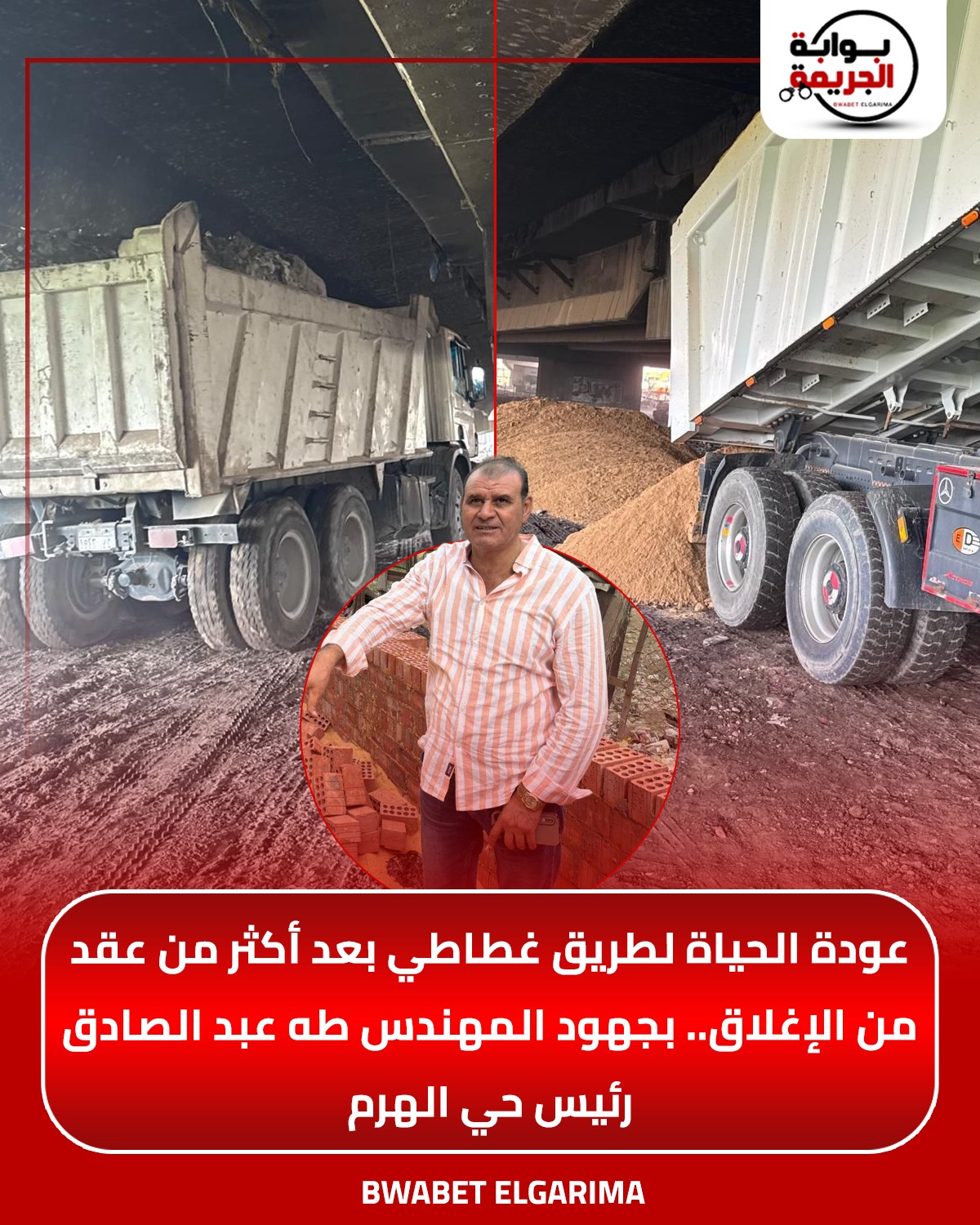 بجهود المهندس طه عبد الصادق رئيس حي الهرم.. عودة الحياة لطريق غطاطي بعد أكثر من عقد من الإغلاق
